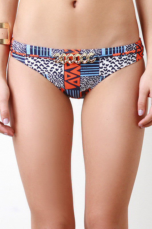 Description This bikini bottom features gold-tone curb-link chain accent at front, low rise waist, patch print design, and fully lined. Accessories sold separately. Made in U.S.A. 80% Nylon, 20% Spandex. Lining: 100% Polyester.