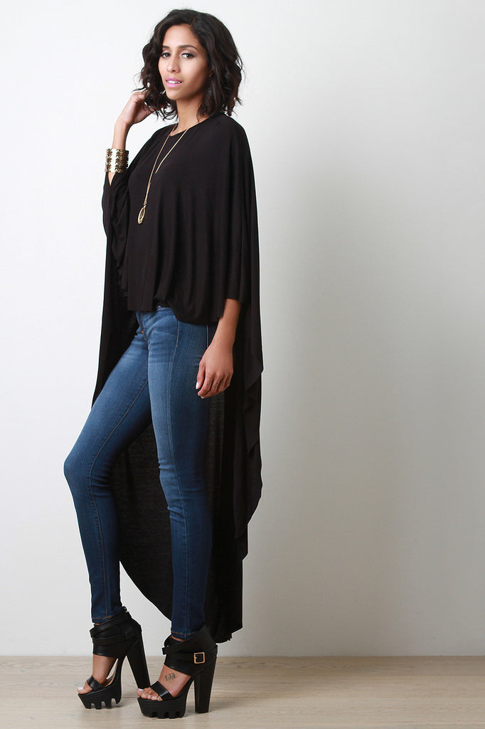 This jersey poncho sleeve holes. Accessories sold separately. Made in U.S.A. 96% Rayon, 4% Spandex.
