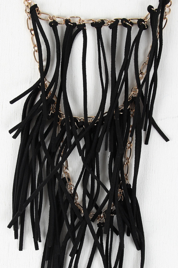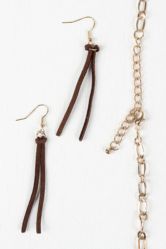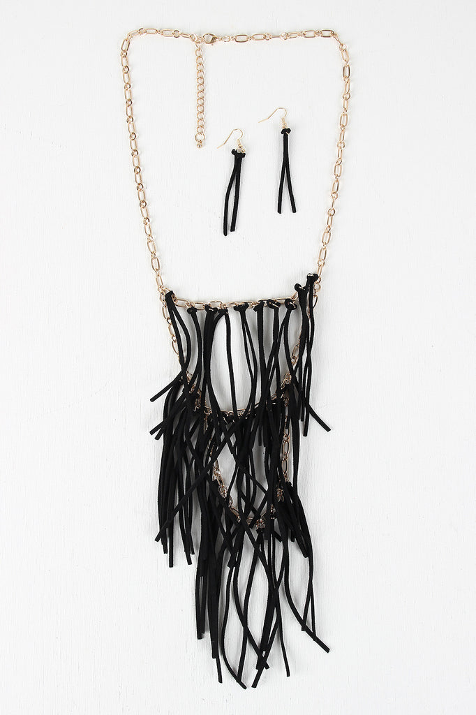 Description This statement fringe on gold-tone cable chain with adjustable lobster hook closure. Necklace includes matching earrings. Lead compliant.