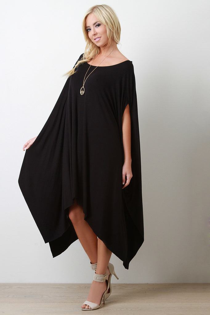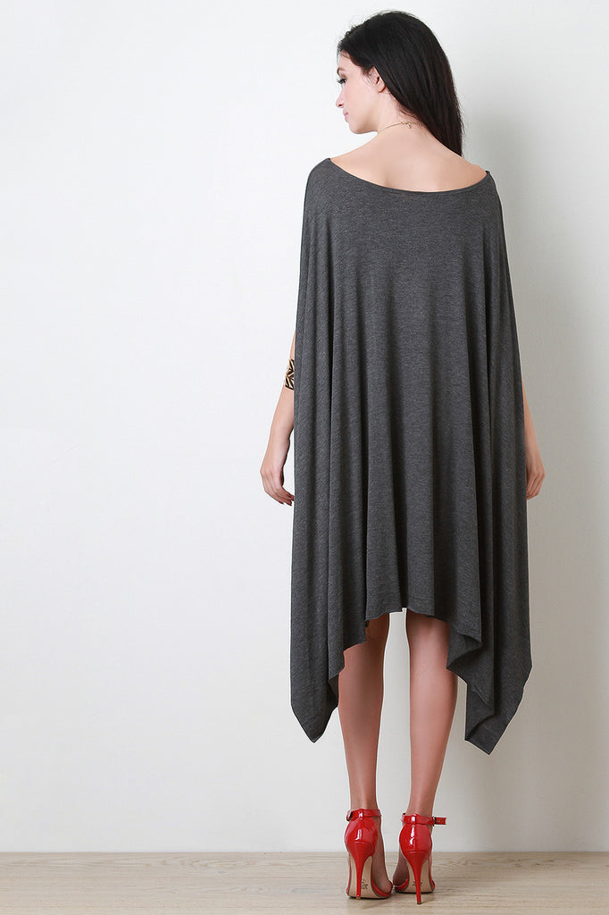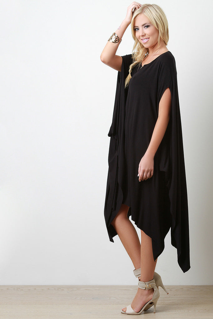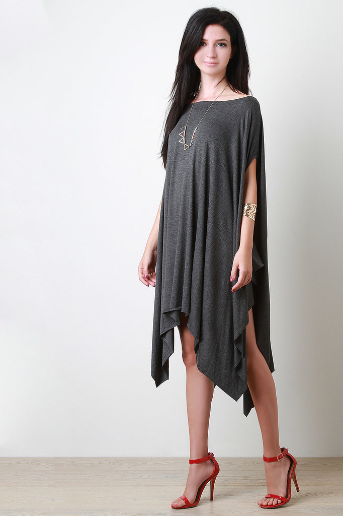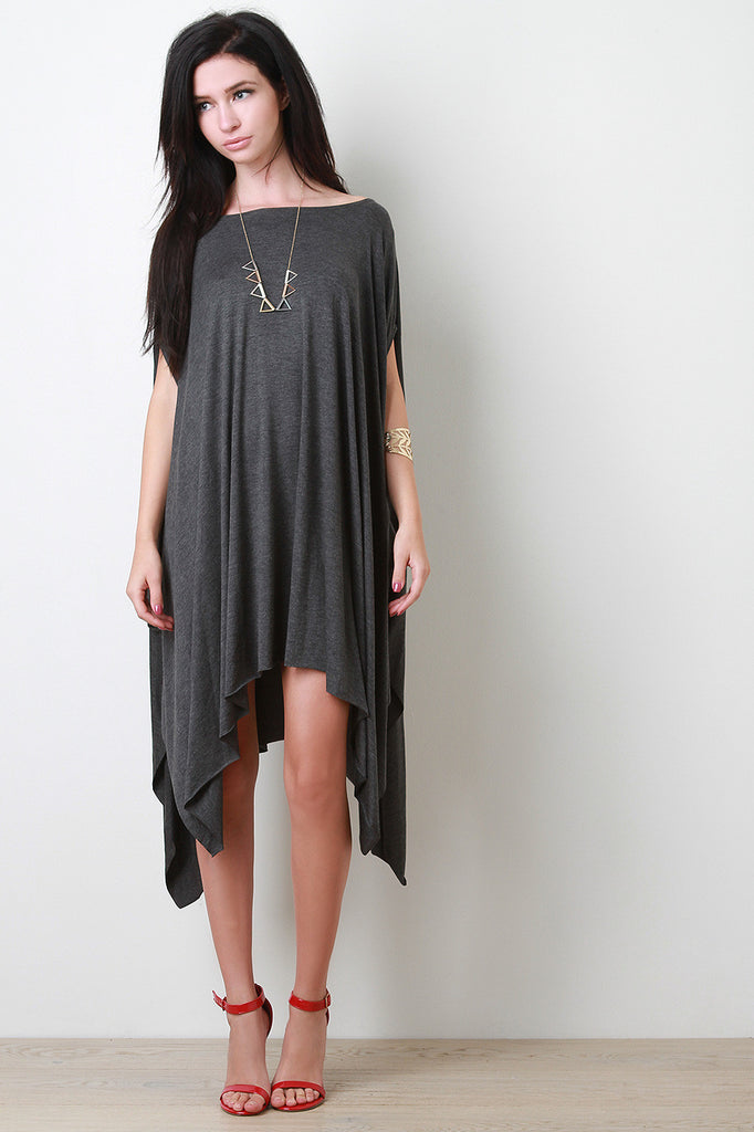 This midi length, depending on personal height. Designed with handkerchief hemline. Accessories sold separately.