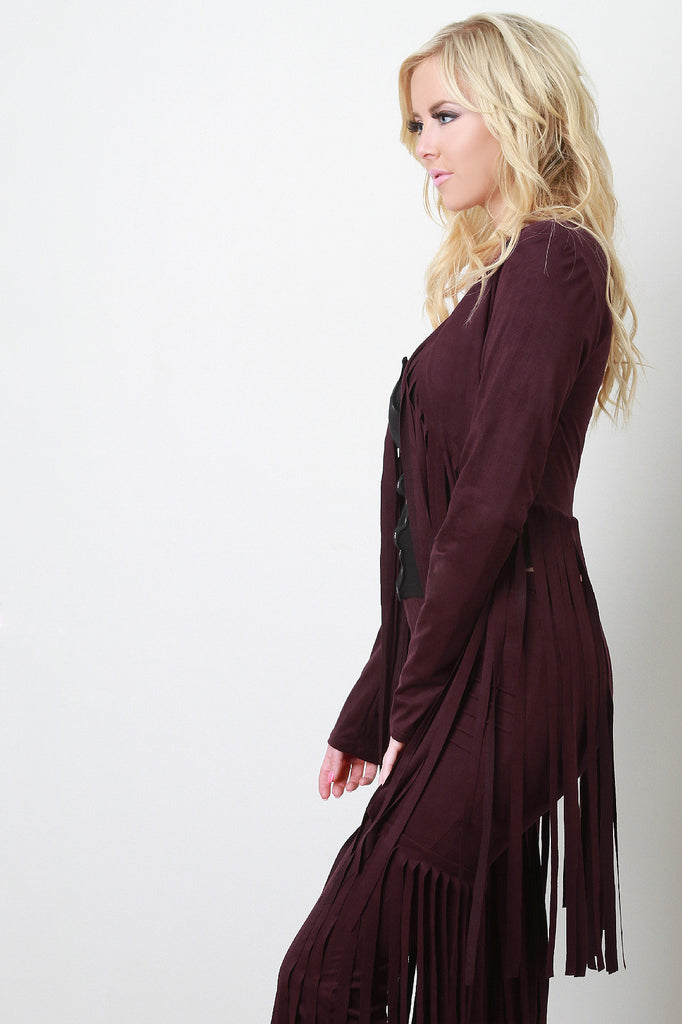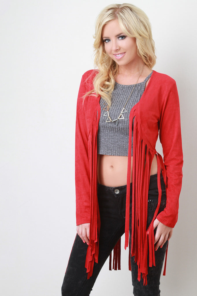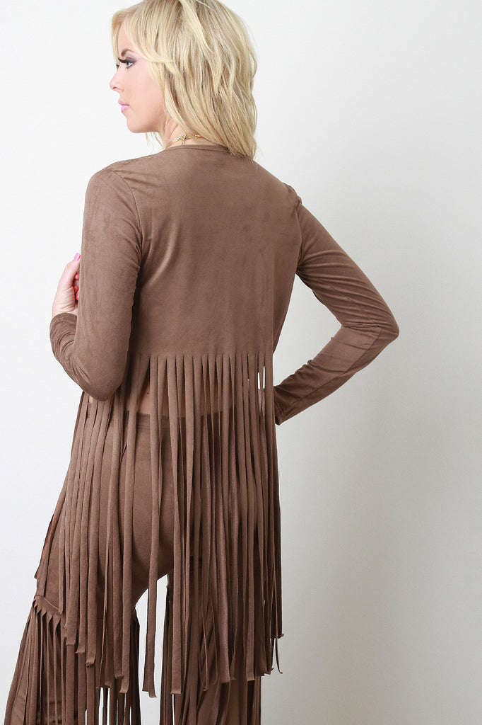 Suede Fringe Long Sleeves Cardigan