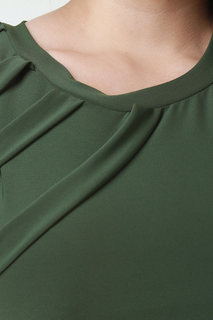 Strappy Shoulder Single Sleeve Ruched Midi Dress