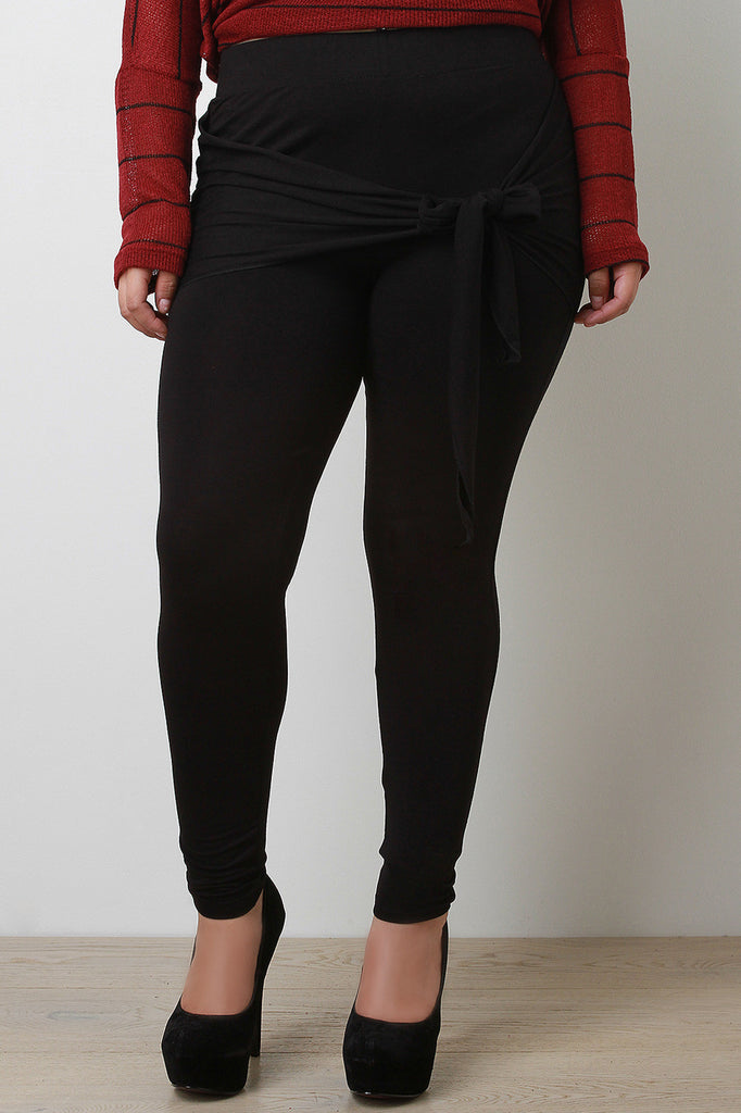 These plus size leggings features a soft jersey knit, elasticized waistband, and self-tie front. Accessories sold separately. Made in U.S.A. 95% Rayon, 5% Spandex.