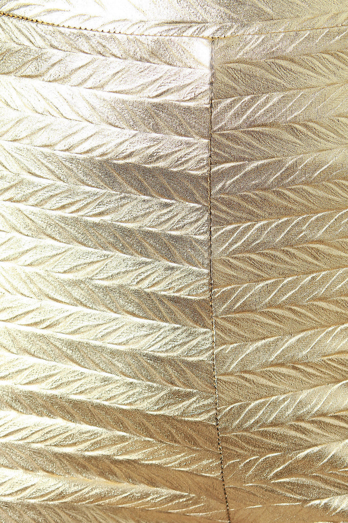 Description These metallic gold shorts features a wide elasticized band with a high rise construction, stretchy sculpture fit, and texture knit fabrication. Accessories sold separately. Made in U.S.A. 95% Polyester, 9% Spandex.
