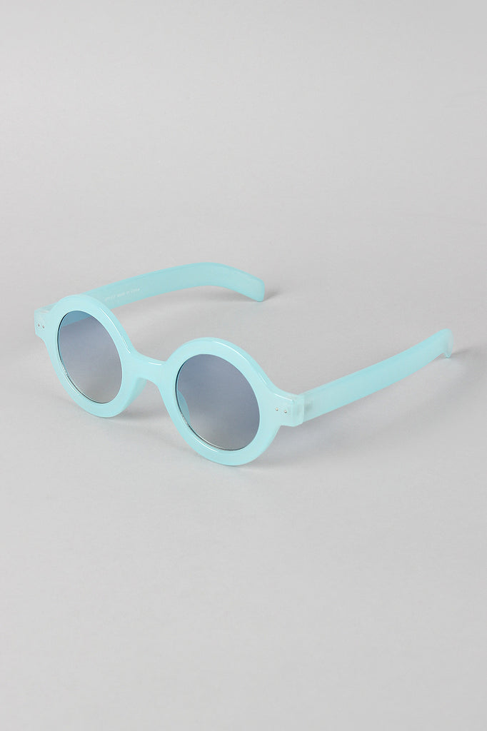 Round eye sunglasses with pastel-colored frame, studded temple accents, and lightly tinted lenses.