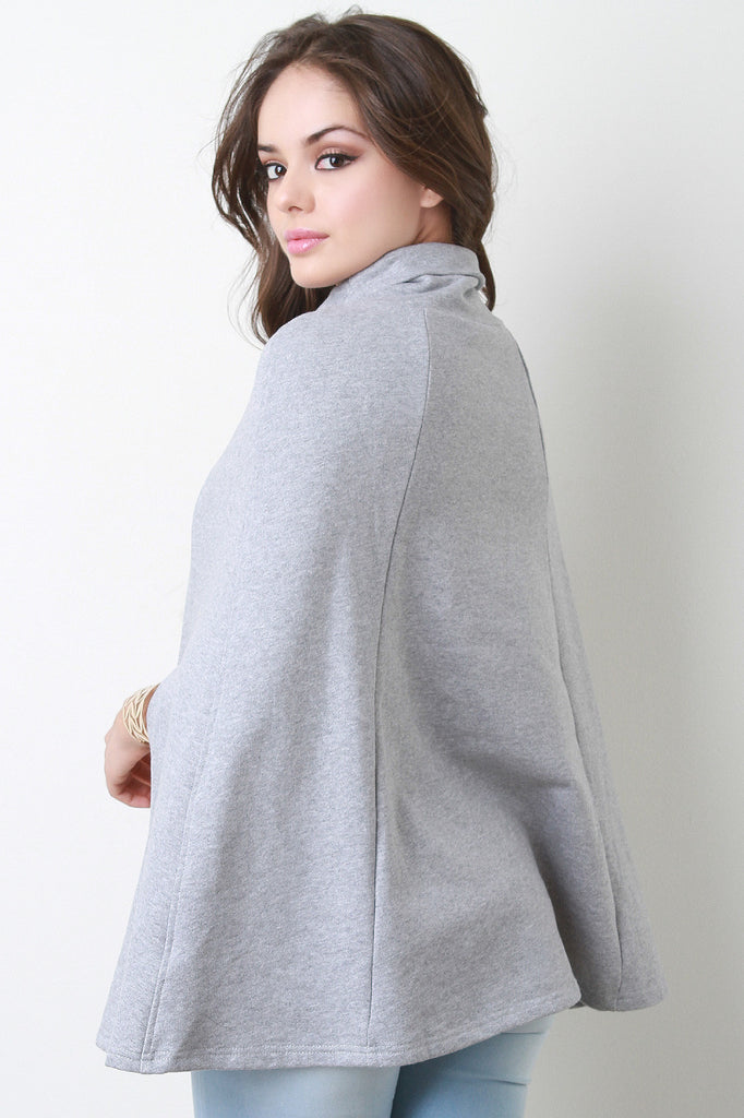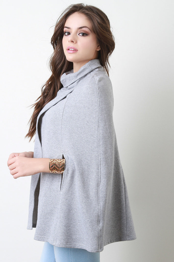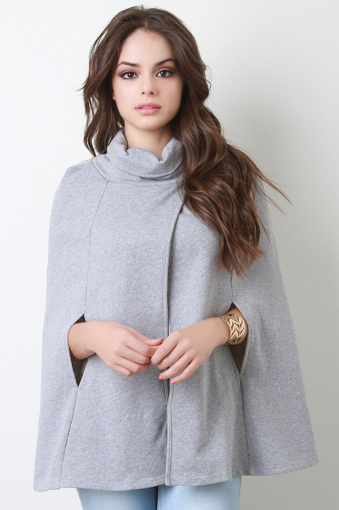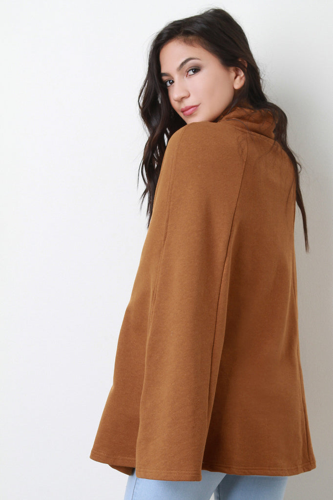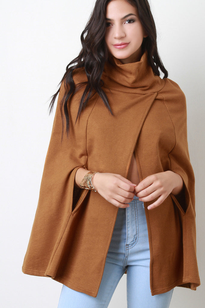 This trendy jacket features a turtle neckline, overlapping detail at front, and cape design arm openings. Unlined. Accessories sold separately. 100% Cotton.