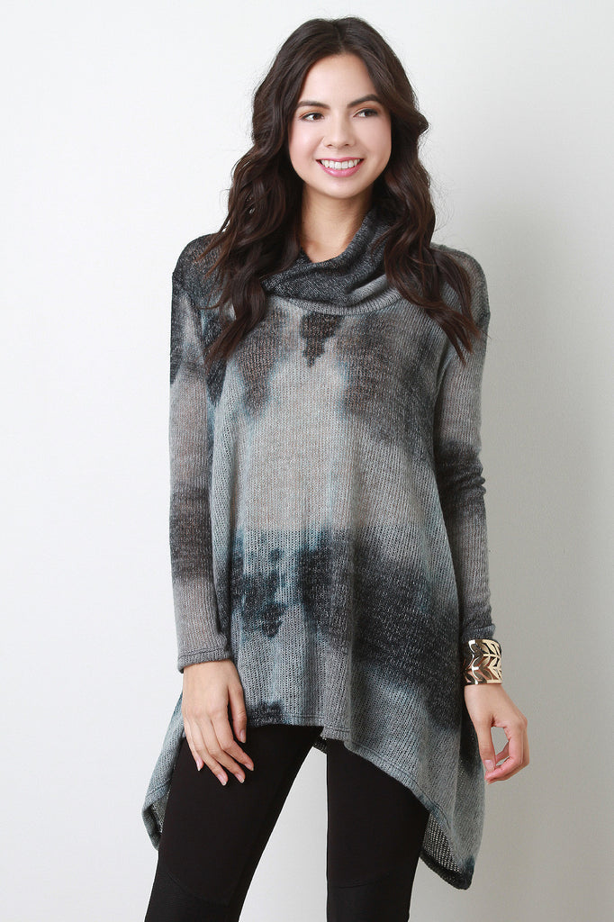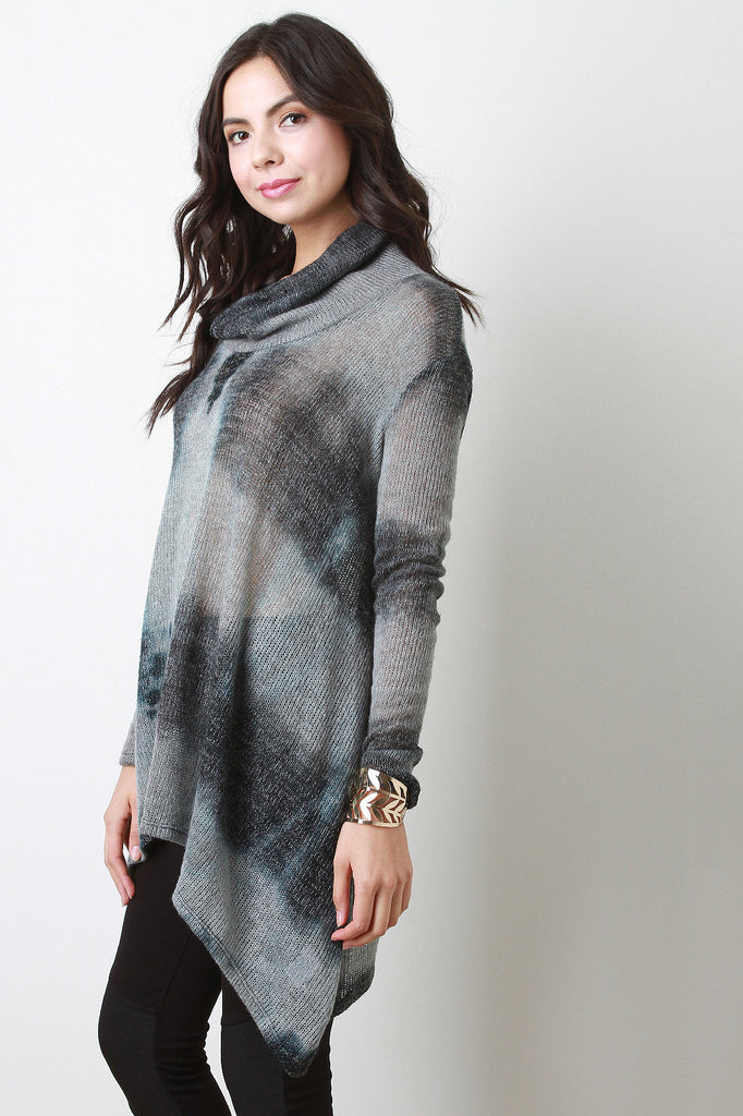 Tie Dye Turtleneck Asymmetrical Long Sleeves Sweater Top