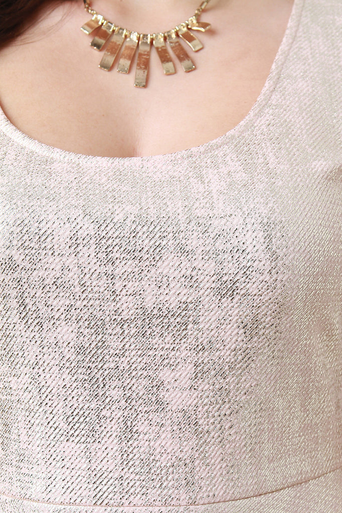 Description This plus size skater dress features a scooped round neckline and backline, short sleeves, and a flared skirt with a metallic hash print throughout. Accessories sold separately. Made in U.S.A. 95% Polyester, 5% Spandex.