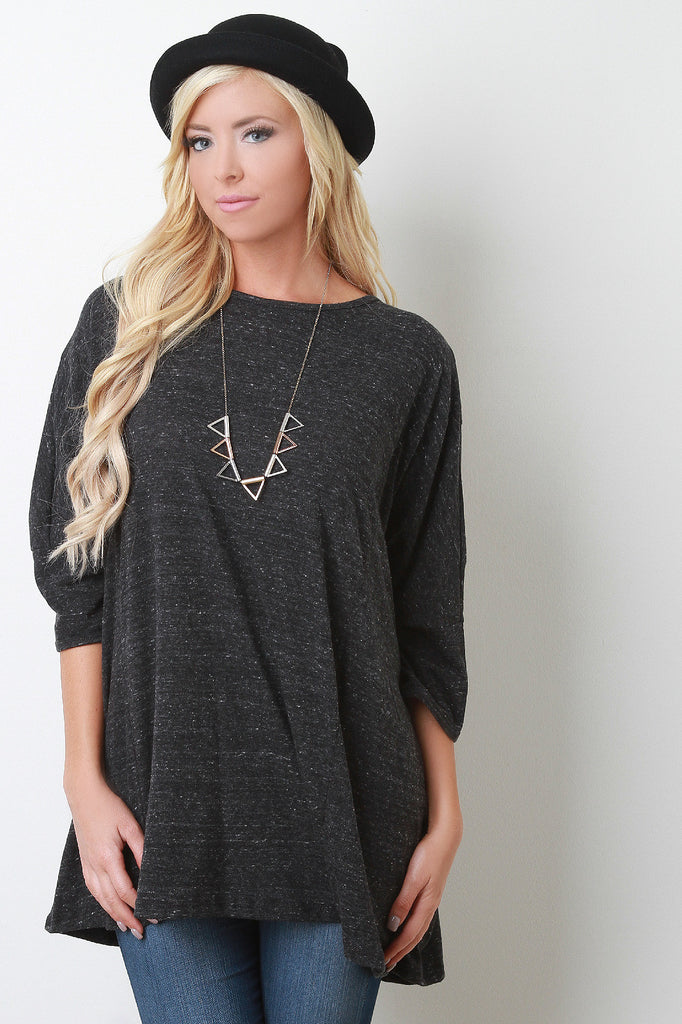 Description This lightweight marled knit top features a boxy cut fit, round neckline, quarter-length dolman sleeves, and "Lucky 7 Seven" screen print back. Accessories sold separately. 50% Polyester, 37% Cotton, 13% Rayon.
