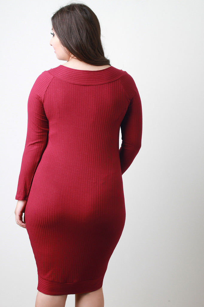 Description This elongated plus size ribbed knit dress features a round neckline, long sleeves, and tulip hemline. Accessories sold separately. Made in U.S.A. 97% Rayon, 3% Spandex.