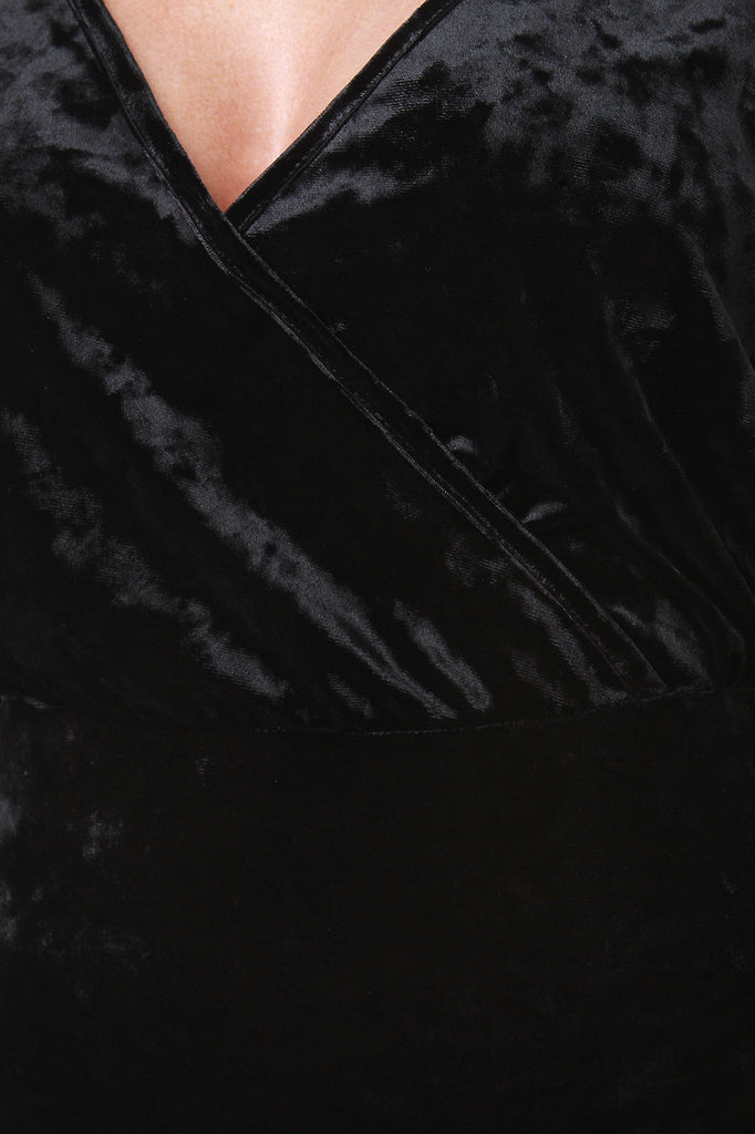 This midi dress features a v-neck surplice neckline, spaghetti shoulder straps to a backless design, elasticized cinched waist, and stretchy sculpture fit. Accessories sold separately. 95% Polyester, 5% Spandex.