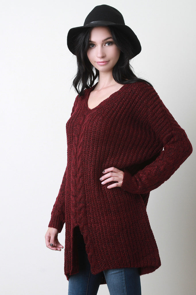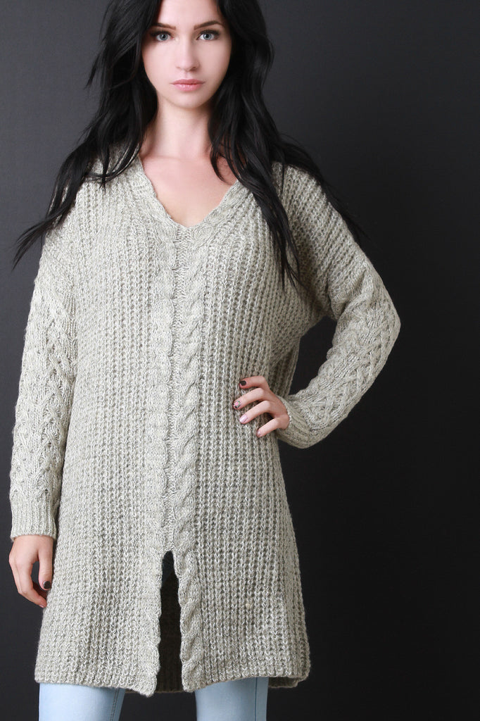 A long full sleeves , v-neckline, and dropped shoulders. Finished with a center front vent. Accessories sold separately. 25% Wool, 75% Acrylic.